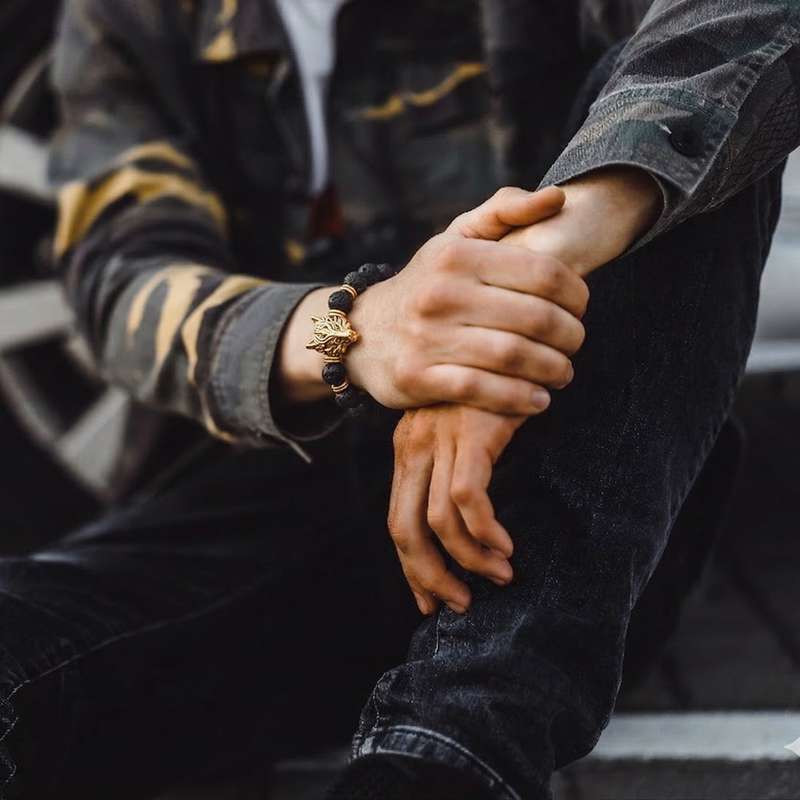 Wolf Head Lava Stone Bracelet | Viking‑Inspired Natural Stone Unisex Stretch Wristband